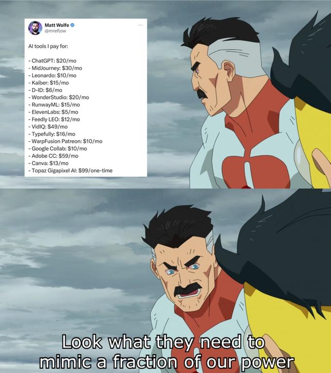 Delete NSFW Whatthefuck123 Jul 29, 2023 at 05:19PM EDT I'd like to point out that Matt Wolfe is Youtuber who channel is built around talking about AI. He "needs" most of these tools the same way Phone Youtubers need 30 different smartphones, it's to analyze the tools themselves. +53 Reply