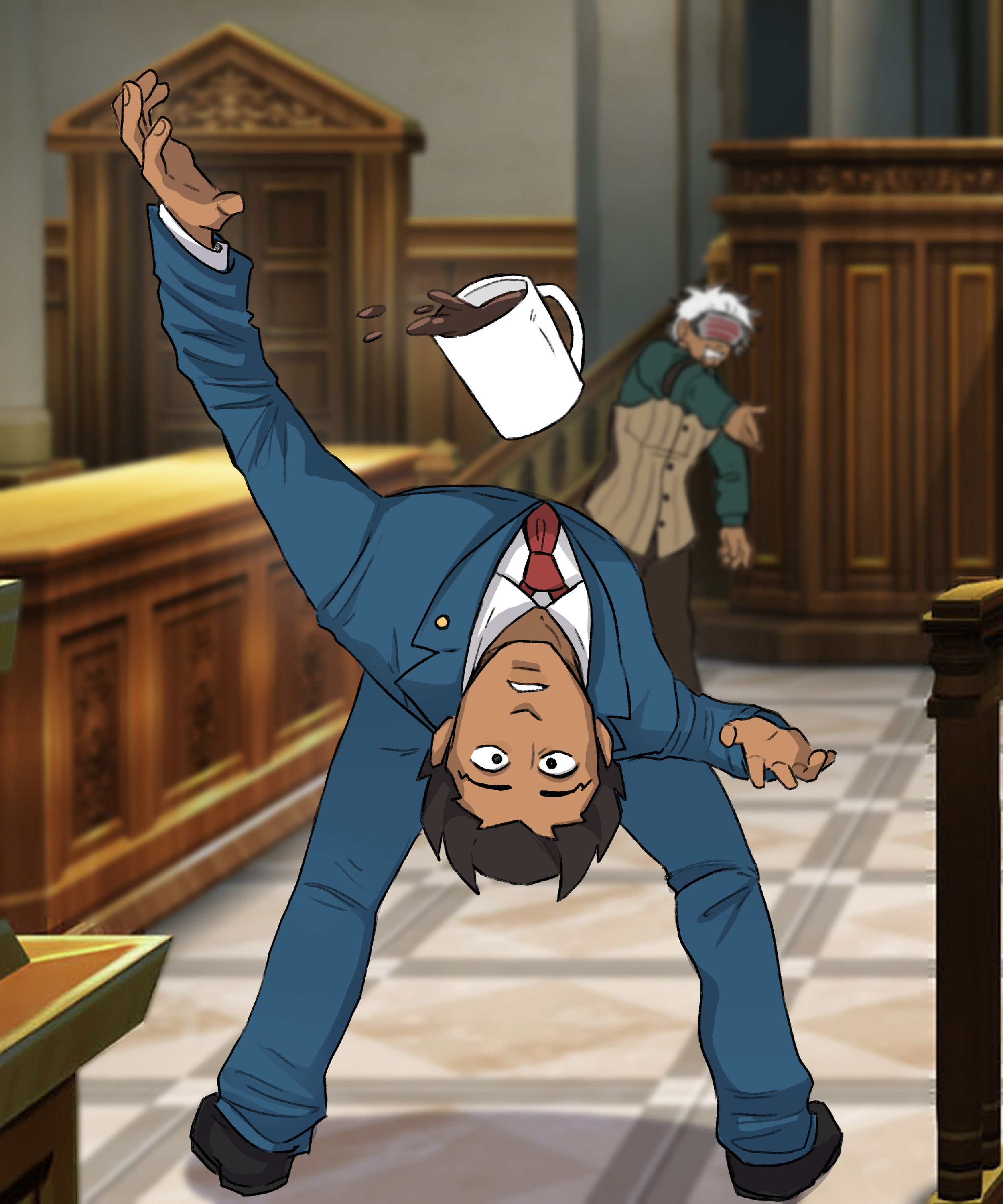 Man Dodging a Kettle - "phoenix wright if he wasnt mid as hell" - Artwork by hellertears