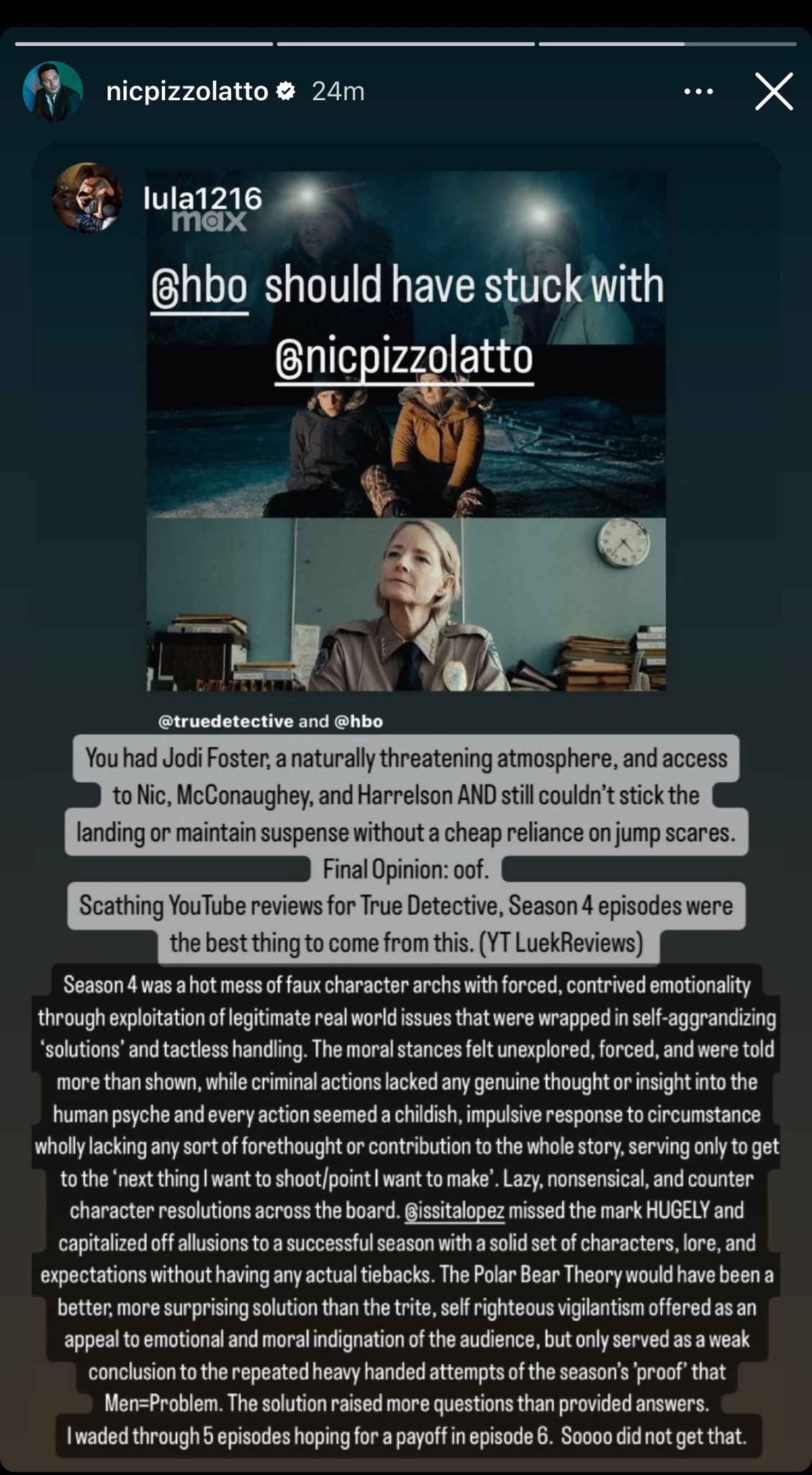 True Detective: Night Country - Nic Pizzolatto IG Stories