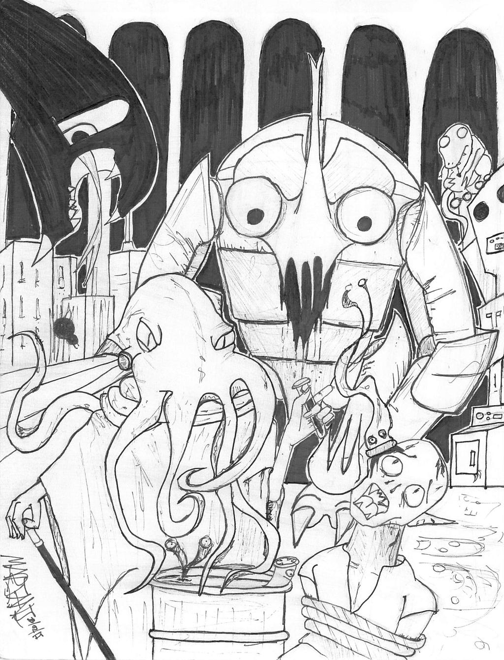 Went and spruced up my previous Cortex drawing with a background and some shading.