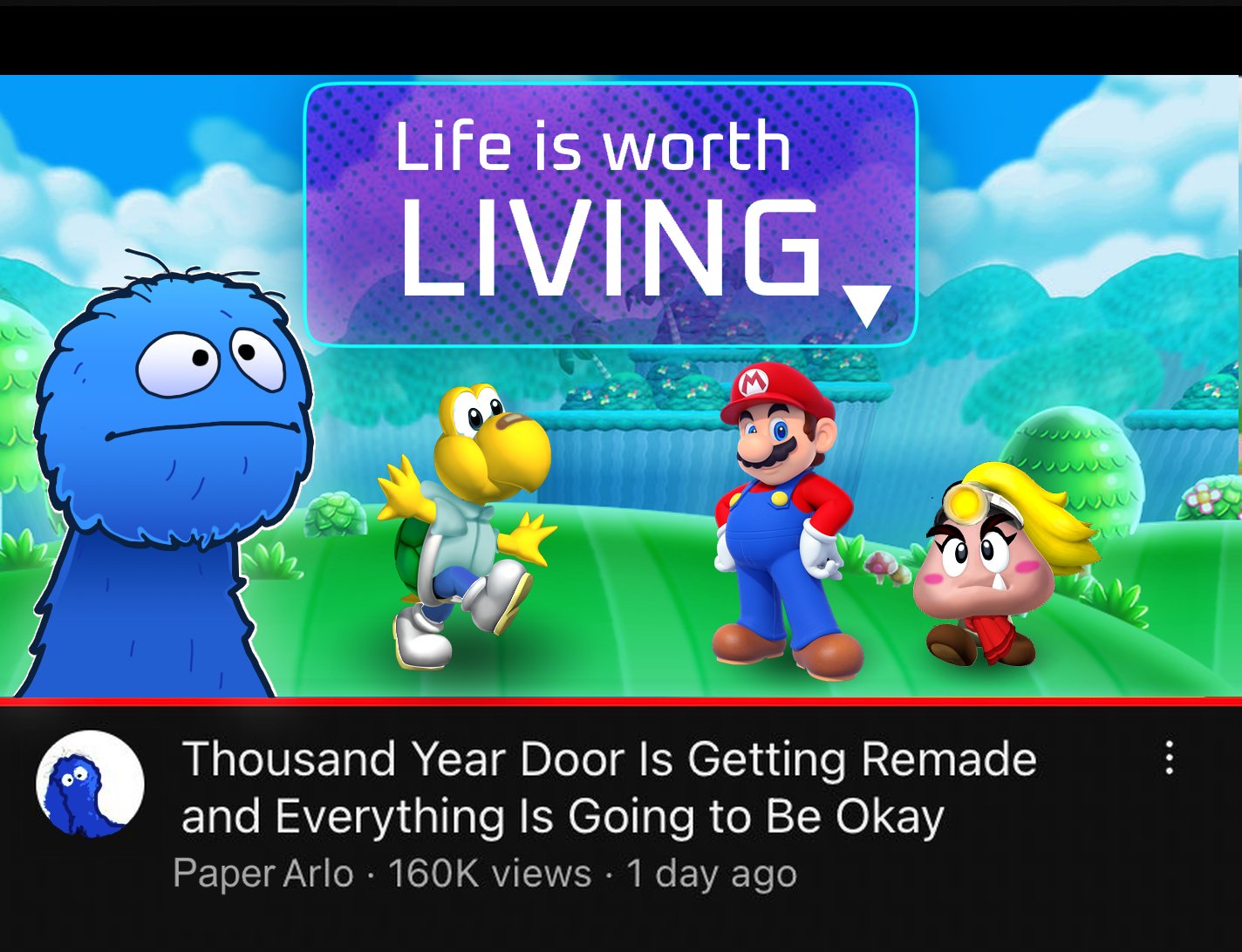 Theres a new pretty big meme on twitter that started a bit after the thousand year door remake announcement, about the youtuber arlo and having a bunch of color swaps of his puppet with different personalities and jokes.
