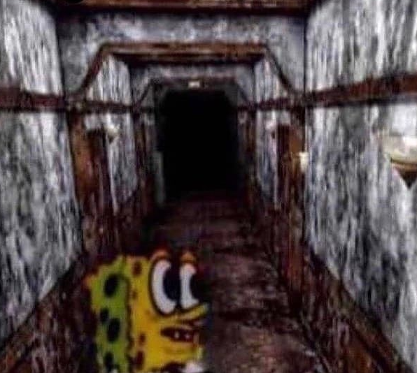 There is a certain picture floating around in the internet, in which Spongebob is looking somewhat scared, while he is in some kind of dungeon or prison.