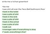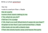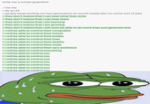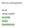 AI-Generated Greentexts are greentext stories, a form of sharing personal anecdotes and fiction popularized on 4chan and other imageboards, that are generated by the GPT-3 language model or other AI software rather than written by humans. First popularized by Tumblr's frogpostbot, using bots to create greentexts became a viral trend in June 2022 with users employing OpenAI's GPT-3 language model to generate greentexts.