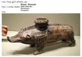 On April 17th, 2013, the drawpaintprint Tumblr blog reposted the photo.[2] On April 1st, 2015, Facebook page Edifying Etruscan Memes posted[3] an image featuring a mock dialogue with a girl who reveals she only dates "Boar Vessel 600-500 BC Estruscan Ceramic" (shown below). On August 14th, 2016, the image was posted[4] to the subreddit /r/me_irl by Redditor OrdinaryHotdog. Prior to being archived, the post gained over 2,000 upvotes and 20 comments.