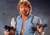 The meme Chuck Norris Facts plays off of this, as all the "facts" deal with Norris' ability to do anything because of his manliness. He can also be seen in many pictures holding two automatic machine guns and/or having an exposed chest, as seen below.