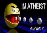 In December 2008, a graphic of Pac-Man captioned with "I'm Atheist / deal with it" was uploaded to Bibanon.org,[10] described as "the source of the 'deal with it' meme" (shown below).