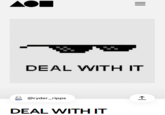 "Deal With It" is an expression used as a retort in response to someone's disapproval. It is often associated with image macros and animated GIFs in which the subject wears a pair of sunglasses.
