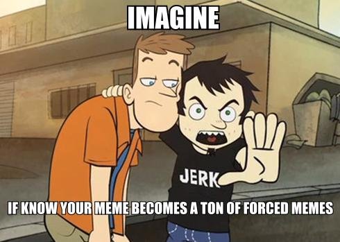 On February 3rd, the Internet humor site 9gag[7] reposted the DrTango's image macro, receiving over 40,400 up votes and 4,200 Facebook shares within the next nine months. On February 9th, the image was reblogged on the Internet humor site College Humor.[3] On August 31st, the image was mentioned in an episode of the video game YouTube show Game Grumps. On September 10th, Redditor RoTTaax submitted a post titled "How I feel when I post a long comment that gets 3 upvotes" to the /r/AdviceAnimals[4] subreddit, featuring an image macro with the caption "I should write a book" (shown below). Within one month, the post received over 9,900 up votes and 45 comments.