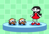 Though the parodies can contain content from anywhere in the game, several of the minigames are used more often in remixes than others. One of these is known as "Glee Club" (shown below, left) which features three children that the player must match to a rhythm pattern. These parodies are popular on the DSi video sharing service Flipnote Hatena, with many playing on the fact that the children's open mouths resemble a scream. Another popular game to parody is titled DJ School (shown below, right). In the actual game, this situation involves the player trying to DJ while being instructed by a non-playable character. These are often parodied by switching out the sprite characters.