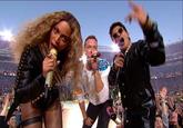Despite Coldplay being billed as the headliner of the event, many American viewers at home quickly took note of the fact that Chris Martin, the British band's frontman and ex-husband of Gwyneth Paltrow, seemed outshined by the star power of his co-performers. At 8:48 p.m. (EST), Internet comedian Josh Ostrovsky, a.k.a @TheFatJew, posted a still shot of the three singers performing on stage together with the caption "when u tryin to fit in" to his Instagram account (shown below), garnering more than 291,000 likes in less than 24 hours.