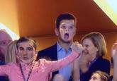 As the game drew to a close with the Denver Broncos leading over the Carolina Panthers by six points (16-10) in the fourth quarter, the Broncos' star quarterback Peyton Manning virtually sealed the team's victory by scoring the final touchdown with three minutes remaining on the field. After the touchdown, the main camera immediately cut to the luxury suite of the Manning family to capture their reactions; while most family members in the box seemed ecstatic and cheered on for the Broncos, Eli Manning, Peyton Manning's younger brother and quarterback for the New York Giants, oddly stood out from the rest as he stood almost solemnly with an unimpressed look on his face (shown below).