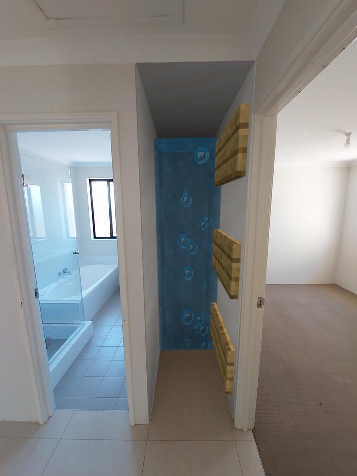 The Bathroom Cranny refers to a viral photograph of a narrow niche between a bathroom and another room, likely meant for a wardrobe or storage. The photograph was posted on X / Twitter in mid-February 2024 was used for humorous edits as users referenced various media, similar to the recent Inaccessible Foyer Landing and The Staircase Cranny memes.