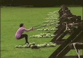 In the season premiere of Amazing Race (Season 17, 2010), a contestant named Claire Champlin of the Home Shopping Network team was given a simple task of catapulting watermelon at stationary targets several meters down a field. After missing several attempts, Claire re-evaluates her strategy and tries again. This time, however, the watermelon gets caught in the loading band and launches back at her face exploding into a red misty cloud of fruit. The contestant was not injured in the incident, but has been quoted as saying "I had the worst headache of my life".